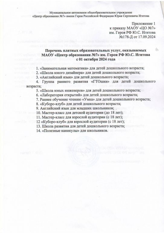 Приложение к приказу №178-Д от 17.09.2024 Перечень платных образовательных услуг (скачать) (посмотреть)